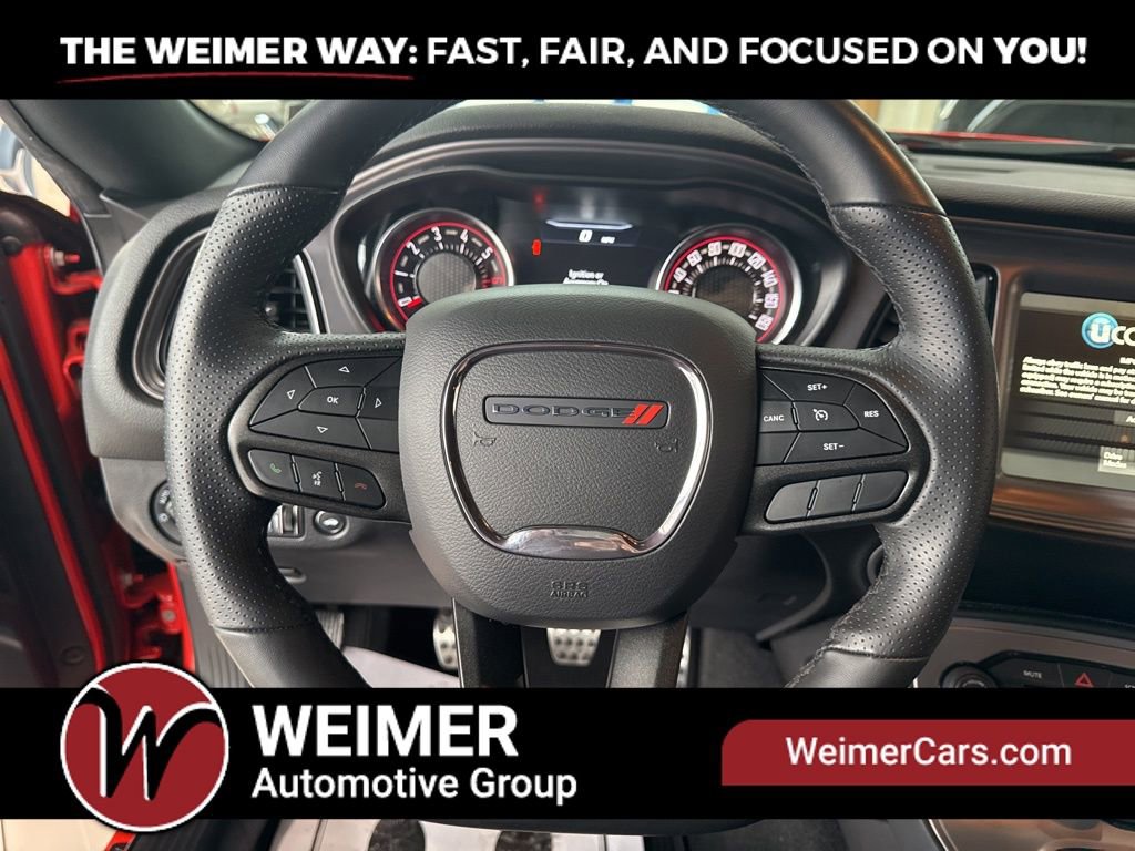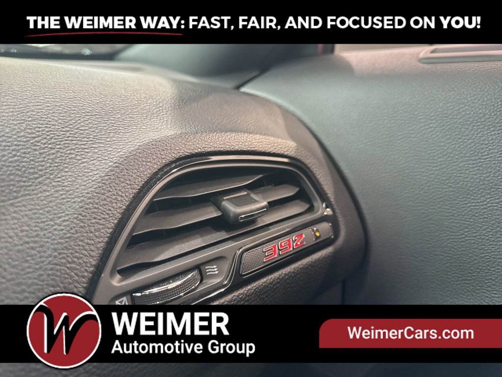 * REMAINDER OF FACTORY WARRANTY *, * BACKUP CAMARA *, * BLUETOOTH *, * ONE OWNER *, * CLEAN CARFAX *, * LOCAL TRADE *, 392 Fender Badge, 8.4 Touchscreen Display, Adaptive Damping Suspension, Alloy wheels, Apple CarPlay, Apple CarPlay/Android Auto, Automatic temperature control, Brembo 6-Pot Fixed Front Caliper Brakes, Flat-Bottom Steering Wheel, Four wheel independent suspension, Front Bucket Seats, Front fog lights, Heated Front Seats, Mopar Bright Door Sills, Mopar Interior Appearance Group, MOPAR Premium Floor Mats w/Logo, ParkView Rear Back-Up Camera, Performance Shift Indicator, Power driver seat, Power windows, Quick Order Package 23N R/T Scat Pack Widebody, Remote keyless entry, Rhombi 2-Pc Wheel Center Cap, Scat Pack Stripe, Spoiler, Steering wheel mounted audio controls, Telescoping steering wheel, Tilt steering wheel, Trunk Mat w/Logo, Ventilated Front Seats, Wheels: 20 x 11.0 Carbon Black Aluminum, Widebody Competition Suspension, Widebody Fender Flares.